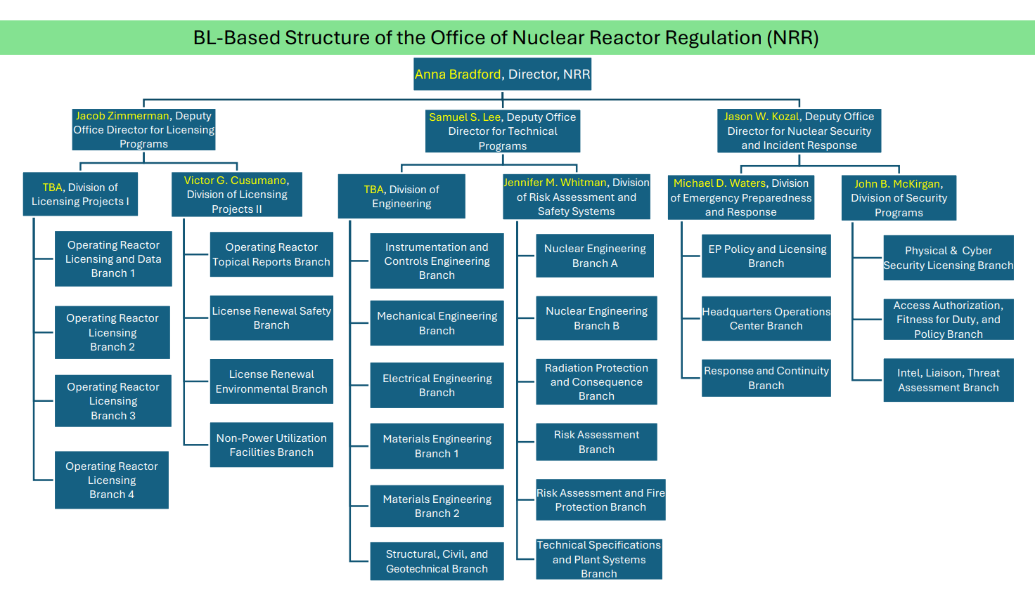 The Office of Nuclear Reactor Regulation (NRR) will include functions such as operating reactor license renewals and amendments and the licensing program for nonpower reactors. NRR will also expand to include most of the functions currently performed by the Office of Nuclear Security and Incident Response (NSIR) that are not related to oversight. This will ensure continued close coordination between related programs, while establishing direct accountability for these programs at the business line level. Oversight and operator licensing for nonpower reactors will also be part of NRR.